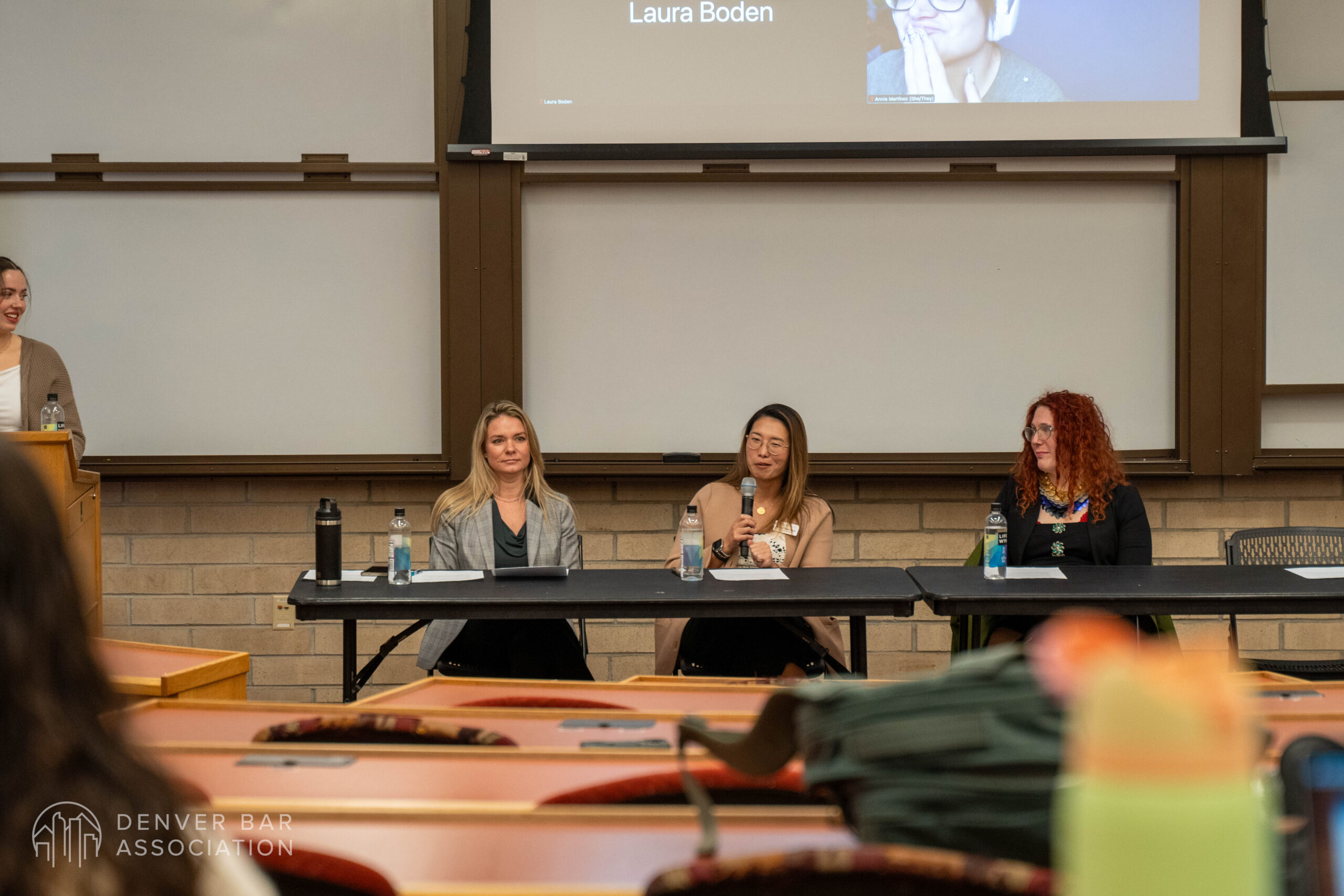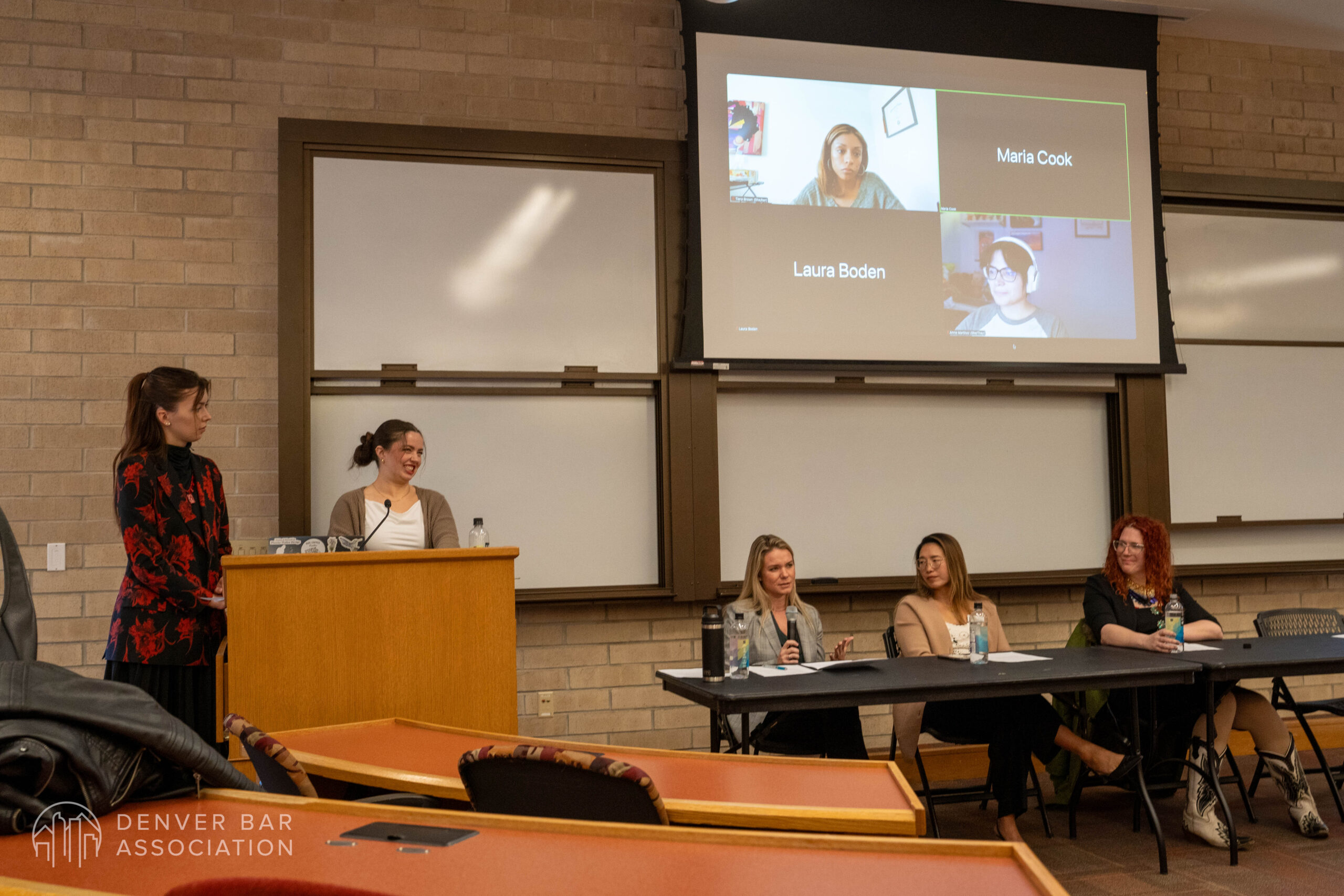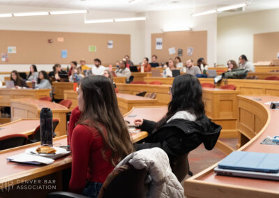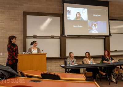 On January 28, 2026, Executive Director, Nicoal Sperrazza, DBA President, Danaé Kinnett, and River Sedaka visited the University of Denver campus, along with remote guests Immediate-Past President, Annie Martínez, and Tiera Brown, to hold a town hall event with the law students currently attending. During the event, students had the chance to ask questions concerning early practice tips, what a young attorney should focus on to expand their network, and how to find time to de-stress. As attendance was great, there are hopes to hold future town hall meetings on DU’s campus moving forward.